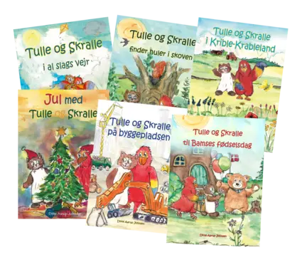Bestil hele Tulle og Skralle serien med 6 forskellige billedbøger og få den 6. bog gratis med i købet. Du er også velkommen til at skrive i kommentarfeltet, hvis du ønsker flere af en slags i stedet for 6 forskellige billedbøger.